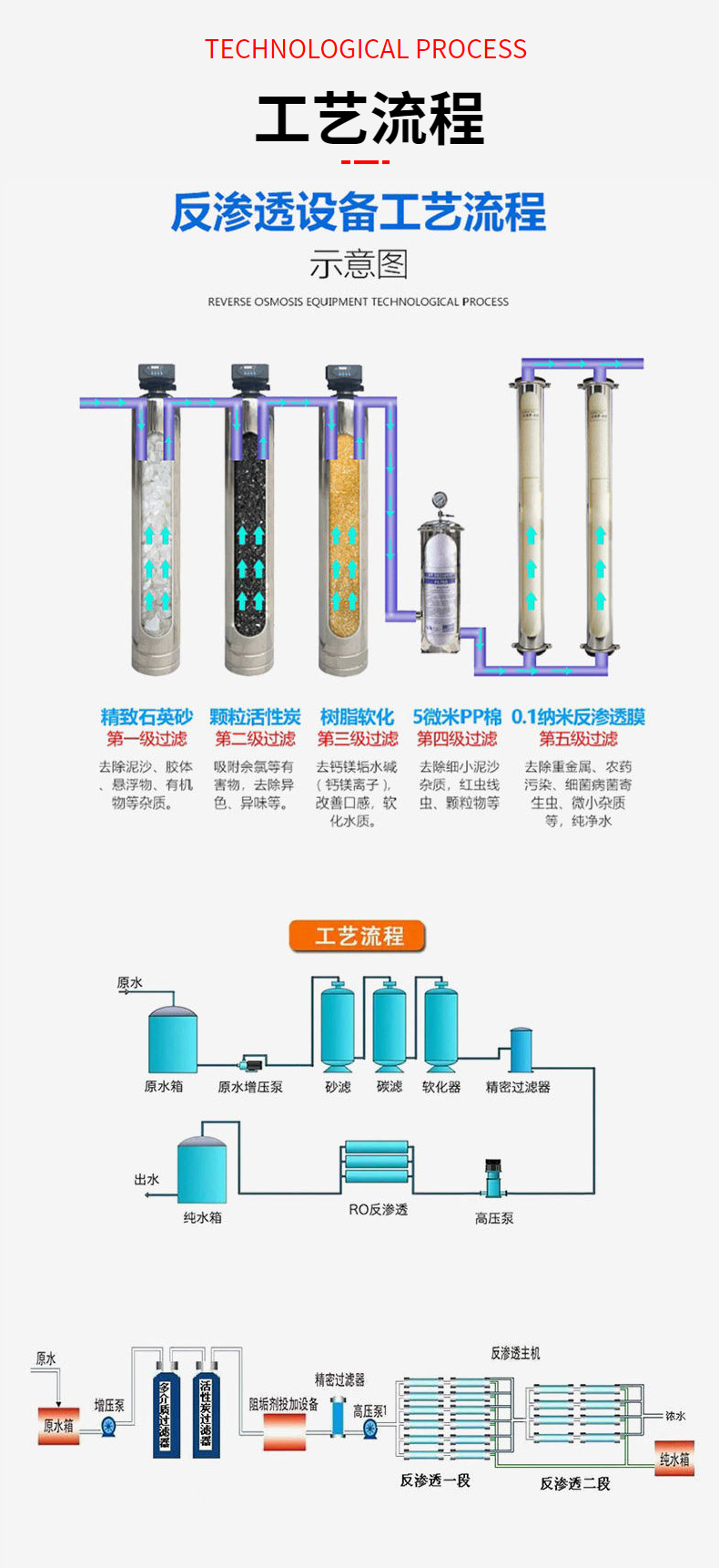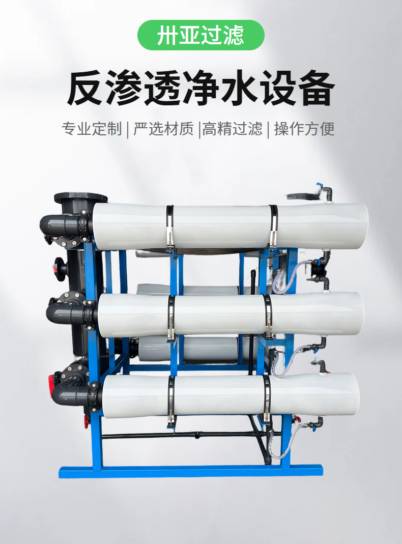 反渗透是一种现代新型的纯净水处理技术。通过反渗透元件来提高水质的纯净度,清除水中含有的杂质和盐。 通过反渗透膜膜两侧的压力不同,通过压迫原水通过反渗透膜,盐的浓度低的会向浓度高的盐方向渗透,能够达到的平衡状态下,就是液体的渗透压。当含有的盐水一侧的压力对于另一侧的渗透压力时候,就会发生反方向的流动,就产生了反渗透过程。